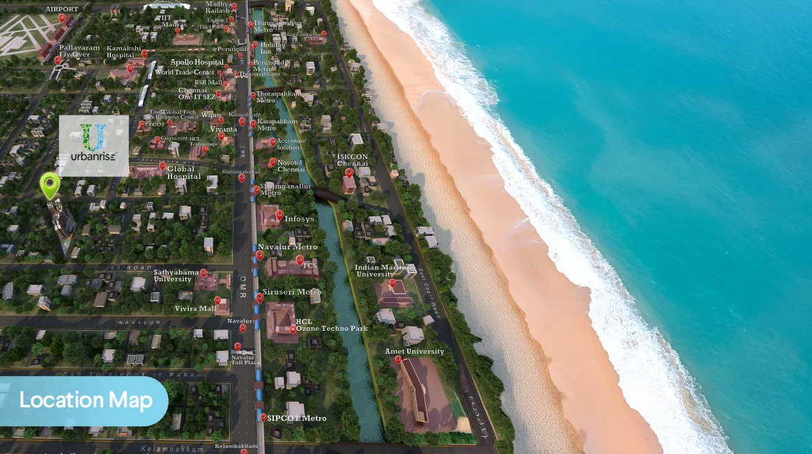Urbanrise Whispers of Sky is an exclusive luxury residential development designed for discerning homebuyers seeking premium living in Chennai’s fast-growing IT corridor, Sholinganallur. Spread across 6.09 acres, the project offers 623 premium residences crafted with advanced Mivan construction technology, ensuring superior strength, durability, and long-term value. This landmark development features 3 & 4 BHK luxury apartments only, housed in an elegant structure of 2 Basements + Stilt + 24 Floors, with an impressive 70% open space dedicated to beautifully landscaped green zones and community areas. Every home is thoughtfully planned with no common walls, ensuring complete privacy and peaceful living. Apartment configurations range from 3 BHK homes starting at 1239 sq. ft. (₹1.05 Cr onwards) to spacious 4 BHK residences of 2144 sq. ft. (₹1.82 Cr onwards). With smart home–ready residences, a dedicated 4 BHK tower, pickleball academy, and proximity to an upcoming metro station just 1 km away, Urbanrise Whispers of Sky redefines elevated urban living.